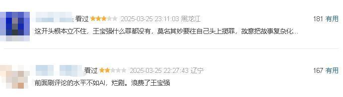 还有网友说:“这开头根本立不住,王宝强什么罪都没有,莫名其妙要往自己头上揽罪,故意把故事复杂化。”
